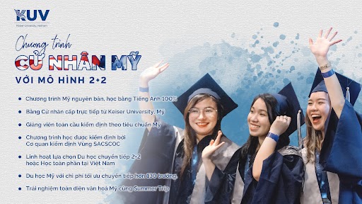 - 4-year track in Vietnam: Earning a US Bachelor's degree from Keiser University, with the entire program taught 100% in English and meeting original US standards. Regardless of the path chosen, students continue to assist from a standard US educational curriculum, foreign faculty members, and study in a global academic environment while saving up to 80% on the costs of studying entirely overseas.