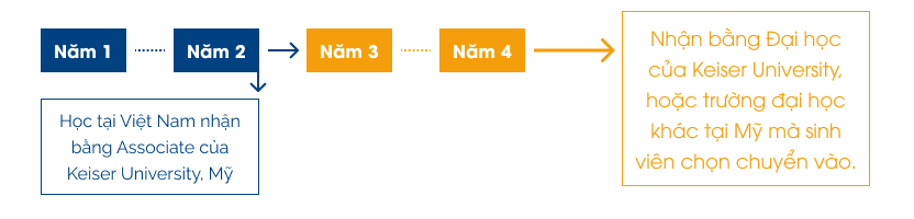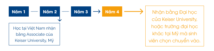 - Giai đoạn 1: sinh viên sẽ học tập chương trình 2 năm đầu tại Keiser University, HCMC