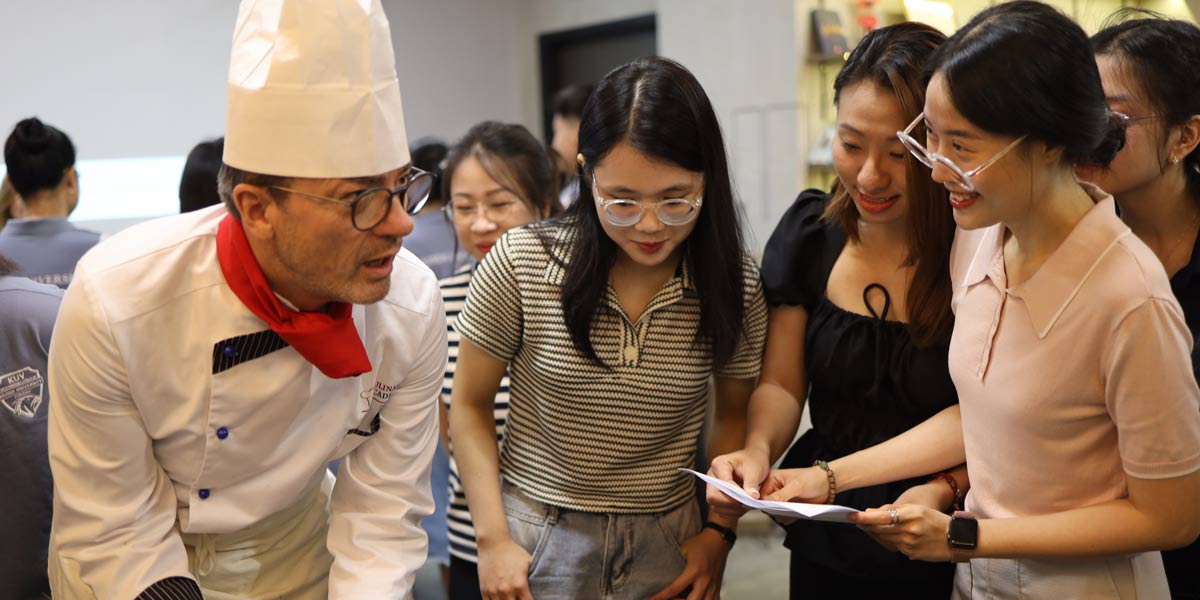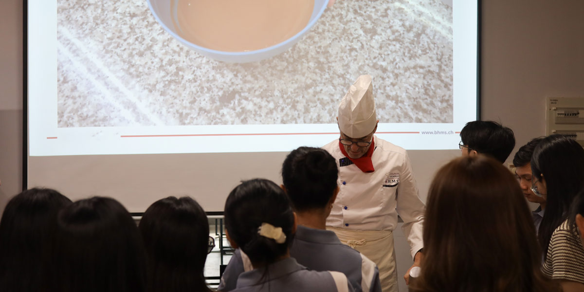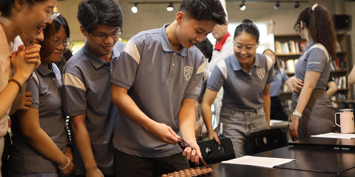 Keiser University Students in HCMC had a cool day learning about the art of chocolate with Chef Roland Schilter from Switzland. Together, we crafted multi-layered Swiss-style chocolates.
